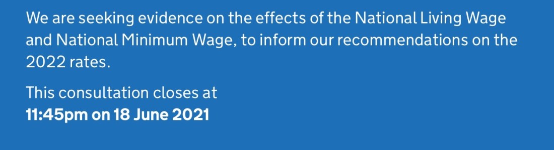 Low Pay Commission – Consultation on April 2022 National Minimum Wage rates